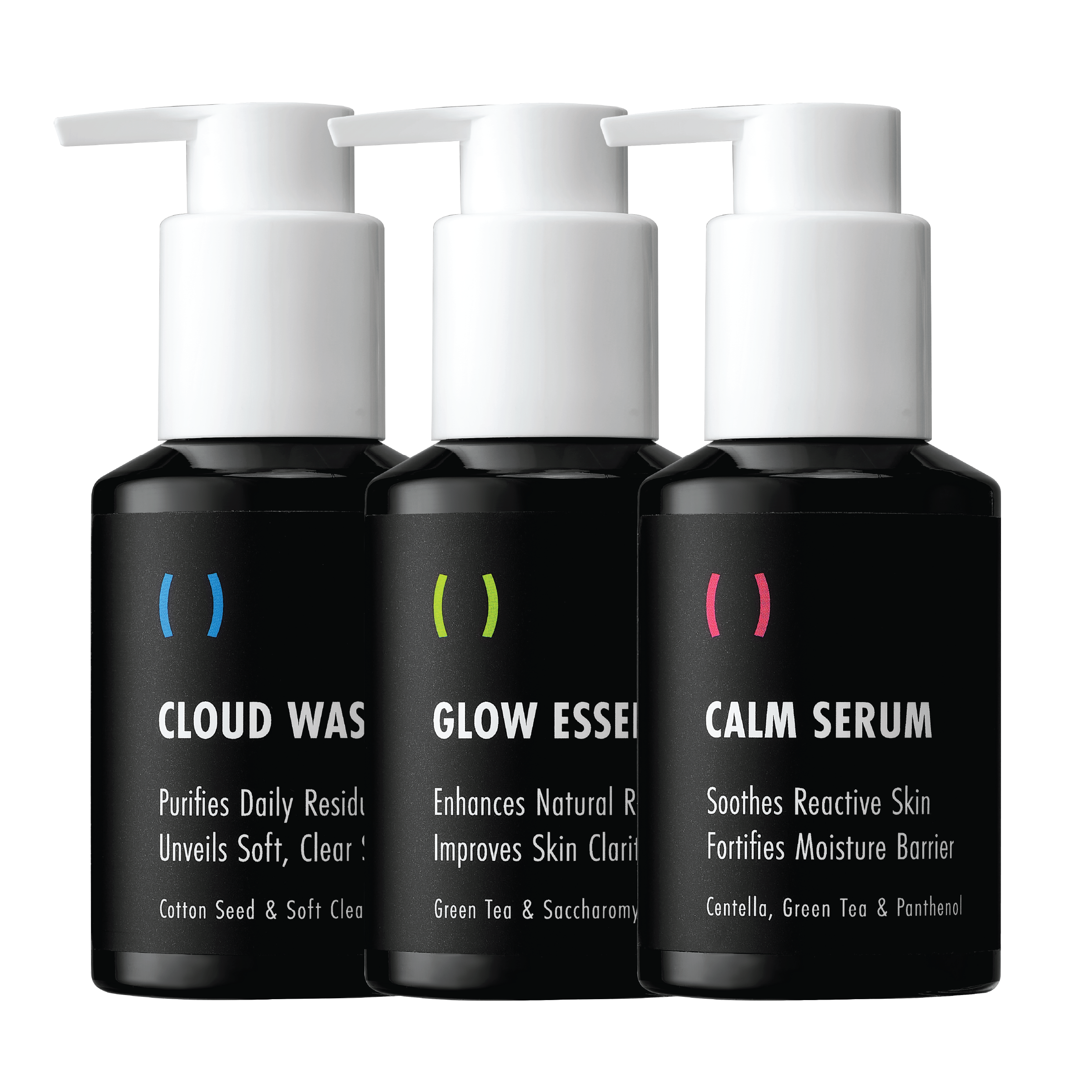 This 3-step essential routine gently purifies the skin (Cloud Wash), preps it with antioxidant energy (Glow Essence), and completes the process by utilizing the quiet strength of Calm Serum to soothe and fortify the moisture barrier. It delivers restorative ingredients like Centella, Green Tea, and Panthenol deep into the skin, easing signs of sensitivity and stress and restoring a serene resilience that resists external stressors.